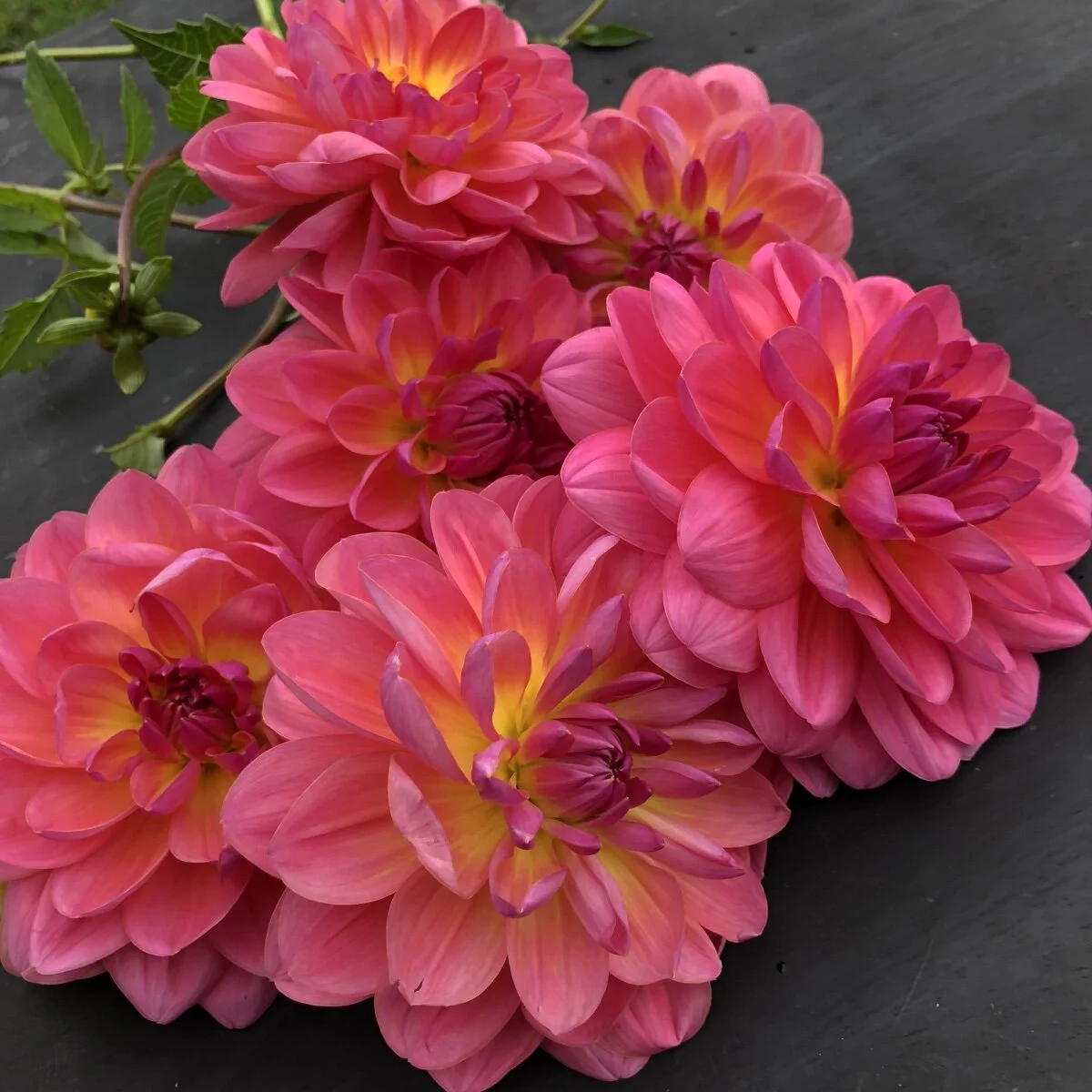 Wildwood Marie 1993 Is a bright pink waterlily form dahlia with 4 flowers topping long stems.